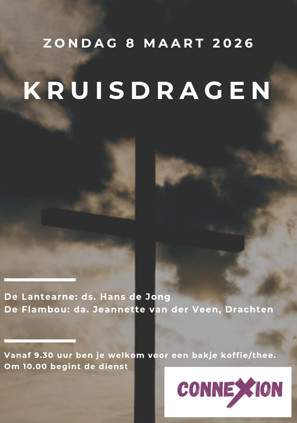 Kruisdragen is het thema waar ds. Hans de Jong onder muzikale begeleiding van Connect over spreekt in de Connexion ontmoetingsdienst op zondag 8 maart. Je kent vast wel de uitdrukking ‘ieder huisje heeft zijn kruisje.’ Als volgeling van Jezus worden we opgeroepen om net als Jezus ons eigen kruis te dragen. Maar wat betekent dit?