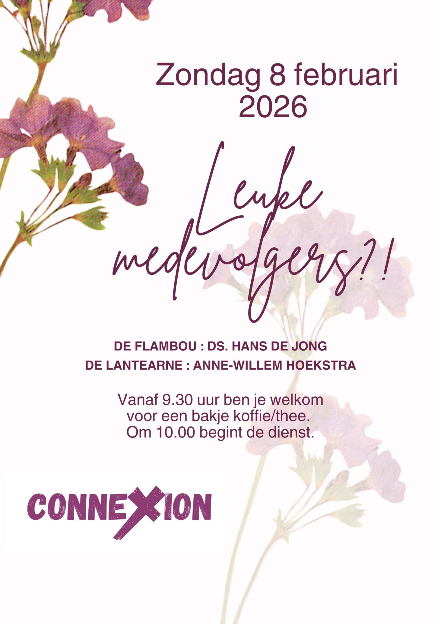‘Leuke medevolgers?!’ is het thema van de Connexion ontmoetingsdienst op zondag 8 februari.