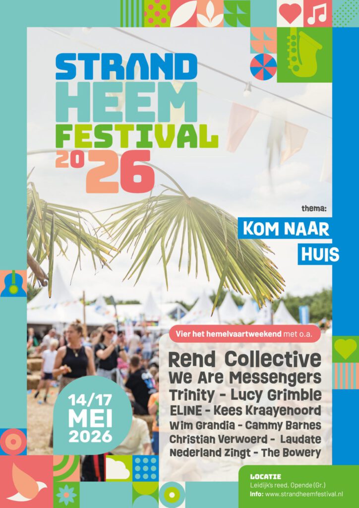 Vorig jaar hebben we vaak gehoord van bezoekers dat het Strandheem Festival voelt als familie, als thuis komen en het leek ons mooi om dat dit jaar bewust centraal te stellen. ‘Kom naar huis’ gaat over thuiskomen op het festival zelf: een plek waar je tot rust mag komen en waar je gezien wordt, waar iedereen erbij hoort. Maar het verwijst ook naar een diepere, christelijke betekenis: het thuiskomen bij God. De uitnodiging van een Vader die zegt: ‘Je mag komen zoals je bent’. Kom naar huis, er is ook een plekje voor jou!