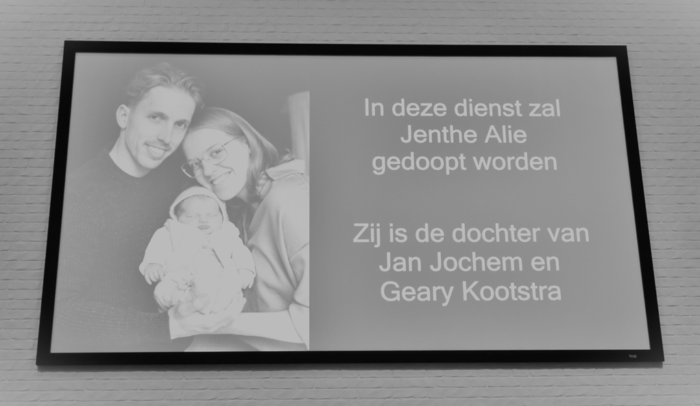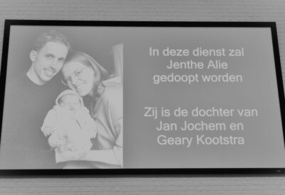 In de dienst van zondag 22 februari werd de Heilige Doop bediend aan Jenthe Alie Kootstra. Ze is geboren op 5 december 2025 en is het dochtertje van Jan Jochem en Geary Kootstra. Het gezin woont op de Johan ter Schoeleweg 17, 9231 GB Surhuisterveen.