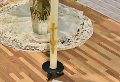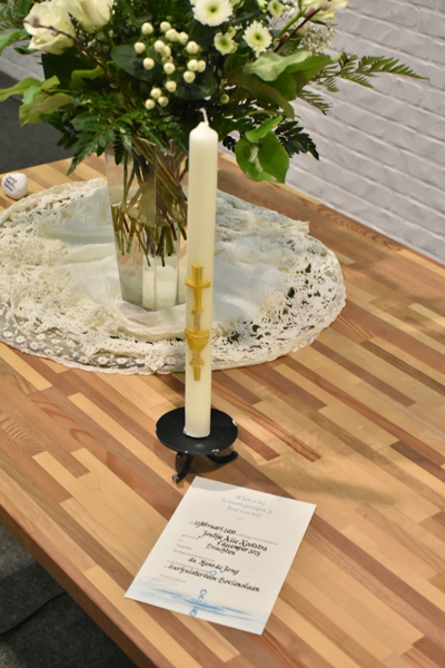 Door de ouderling van dienst werd de doopkaars overhandigd. Ook van de kinderen van Joy4Kids ontvingen de doopouders een geschenk.