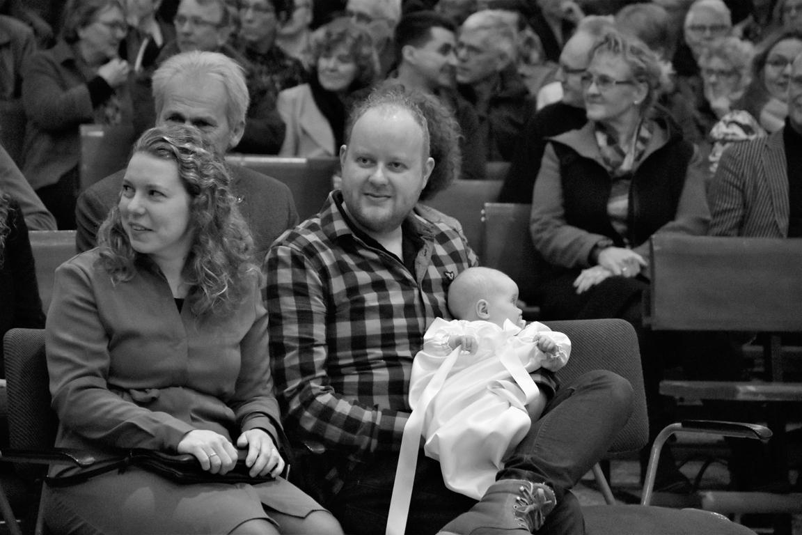 Staande werden de doopouders met hun pas gedoopte Ilse Mare toegezongen lied 348, de verzen 1, 9 en 8: Heer van uw kerk.