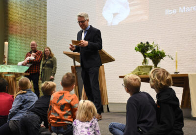 Door de ouderling van dienst werd de doopkaars overhandigd. Ook van de kinderen van Joy4Kids ontvingen de doopouders een geschenk.