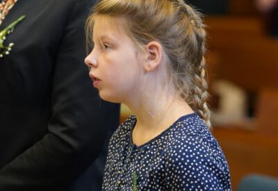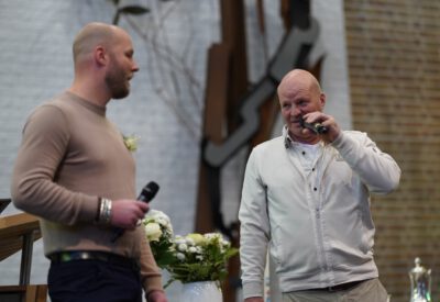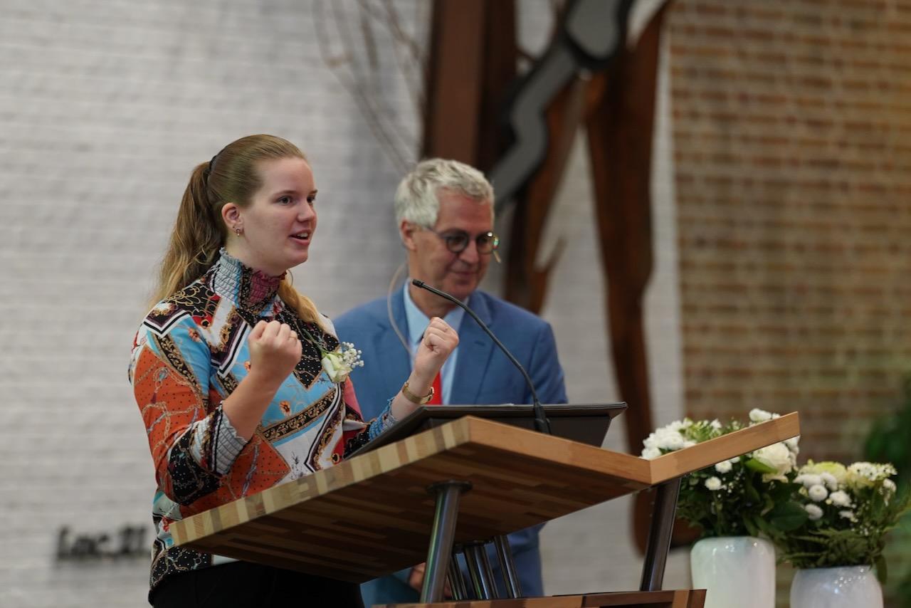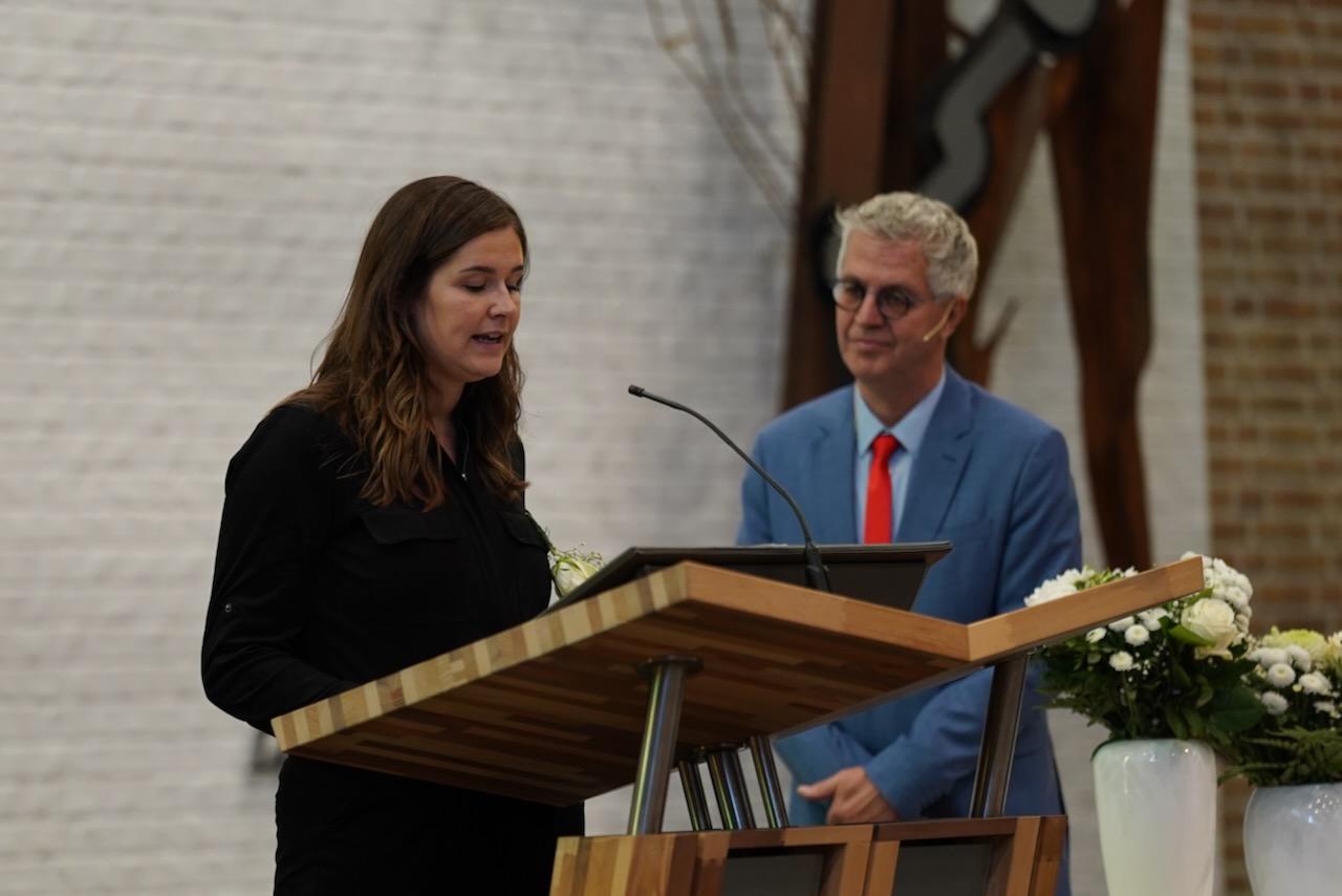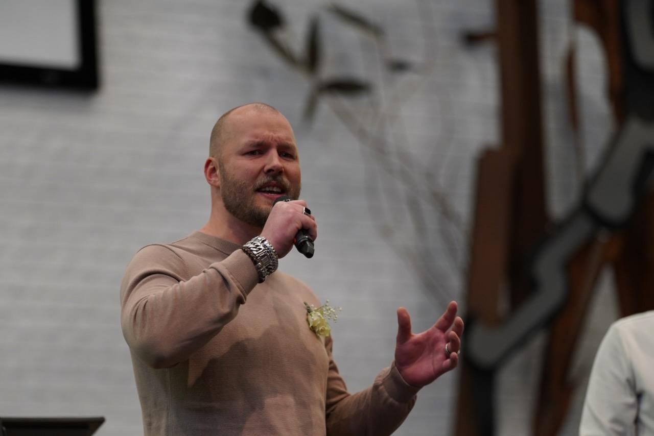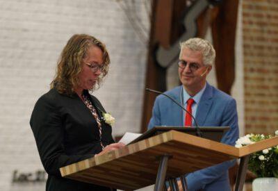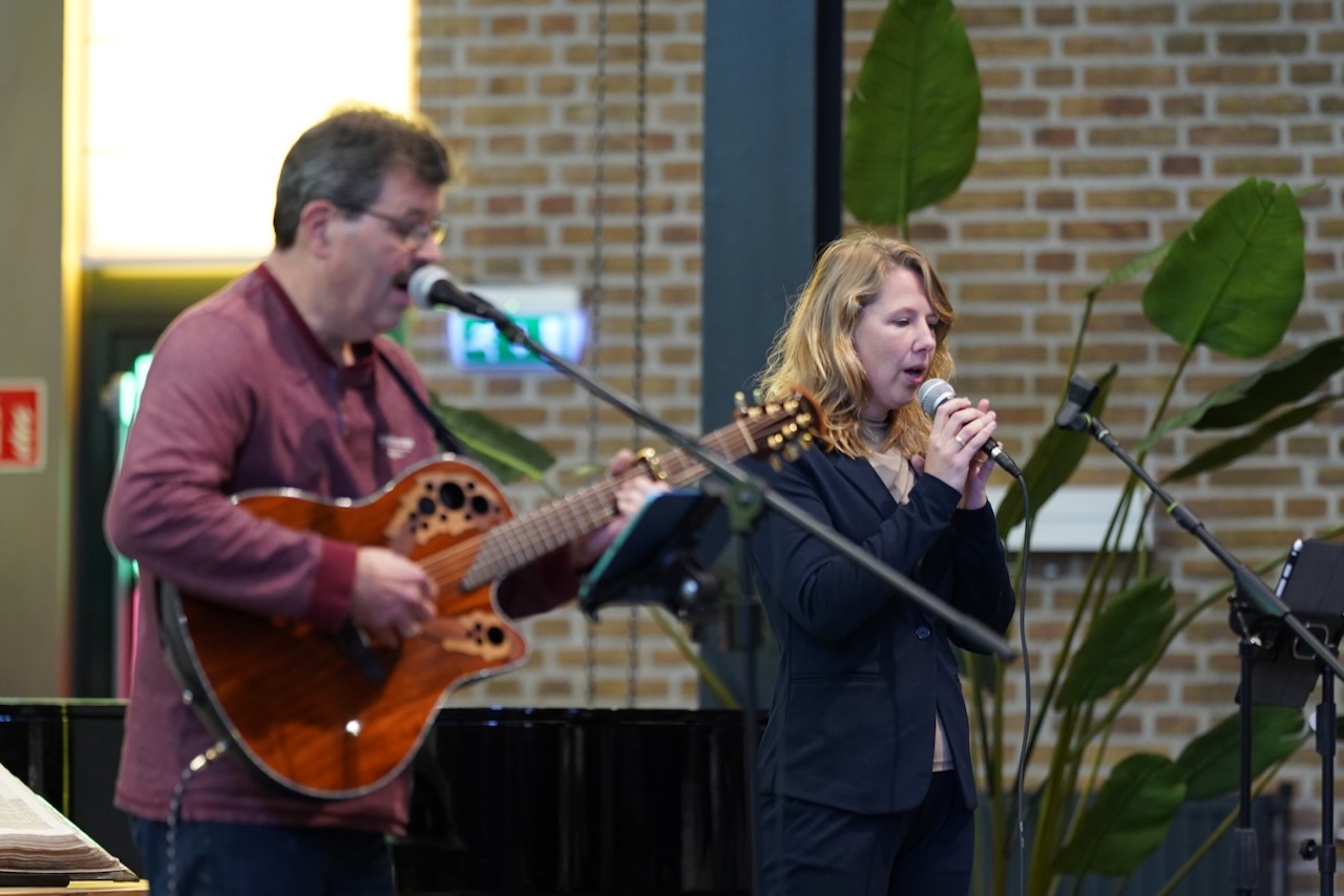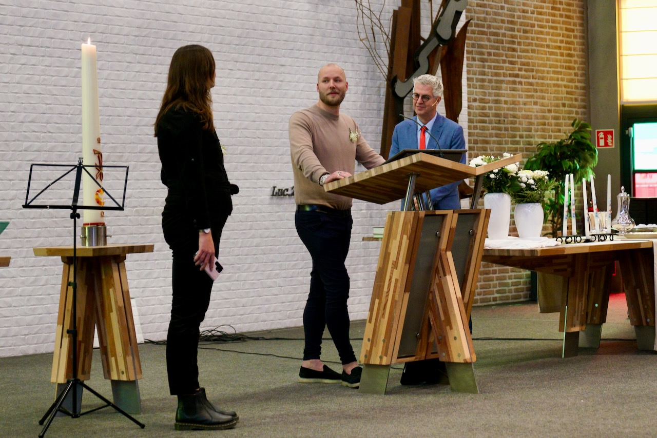 “Ook voor ons is het een bijzondere dag”, liet ds. Hans de Jong aan het begin van de dienst weten. Getuigenissen werden afgelegd door Mark Schraag, Naomi Trijntje Oegema, Deborah Anne Hoekstra, Elizabeth van Houten en Jan en Maryse Amber Stienstra. Aansluitend werd de tweeling Matthieu Henri Peter en Celeste Isabel Gea Stienstra opgedragen. De schriftlezing voor deze dienst was gekozen uit Romeinen 6 waarin onder meer wordt ingegaan op de betekenis van de doop. “De doop laat zien dat we bij Jezus horen. Door onze doop zijn we eigenlijk samen met hem gestorven en begraven. En door onze doop leven wij als nieuwe mensen. Want Christus leeft! Onze machtige Vader heeft hem laten opstaan uit de dood.” Met verwijzing naar de brief van Paulus aan de Romeinen ging ds. De Jong daar verder op in.