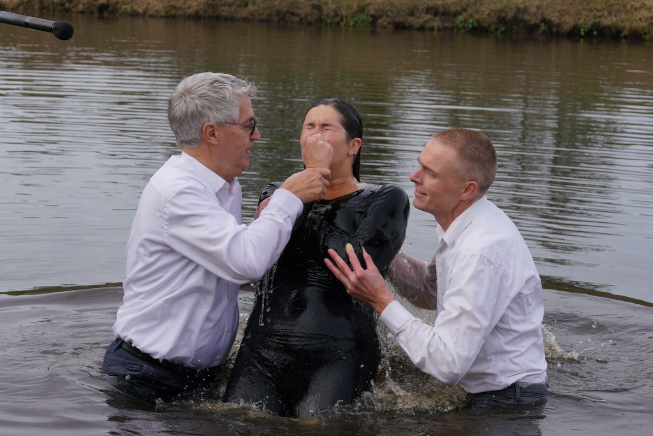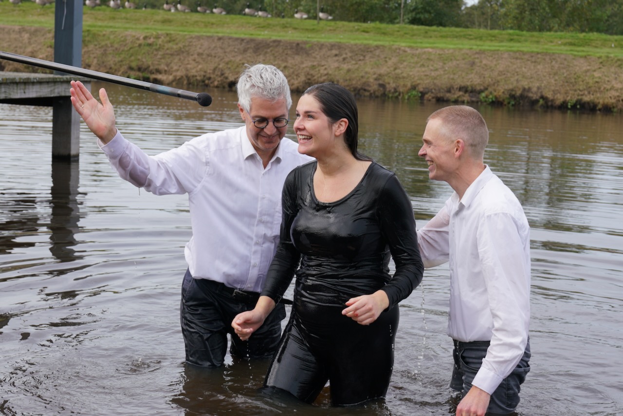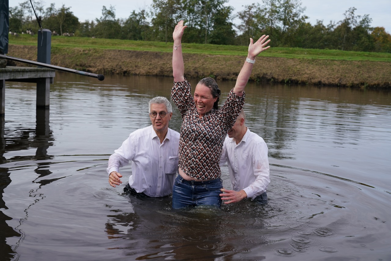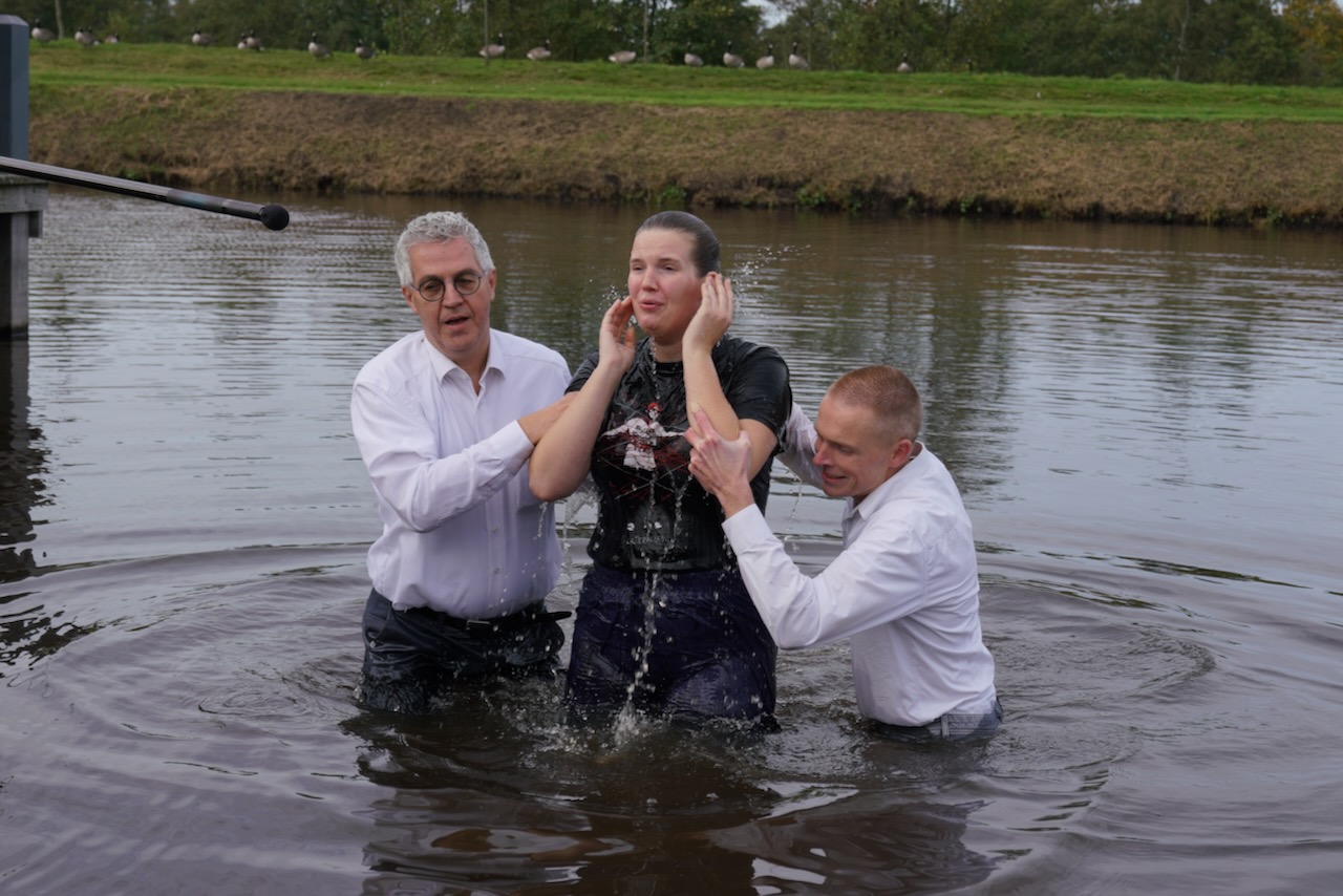 Zondag 19 oktober werd voor onze gemeente in meer dan één opzicht een bijzondere dag. In de ochtenddienst werden twee kinderen opgedragen en vertelden zes gemeenteleden wat God in hun leven heeft gedaan en wat het geloof voor hen betekent. Later werden ze aan de Westerdwarsreed tussen Opende en Surhuisterveen door middel van onderdompeling gedoopt of werd hun doop bevestigd.