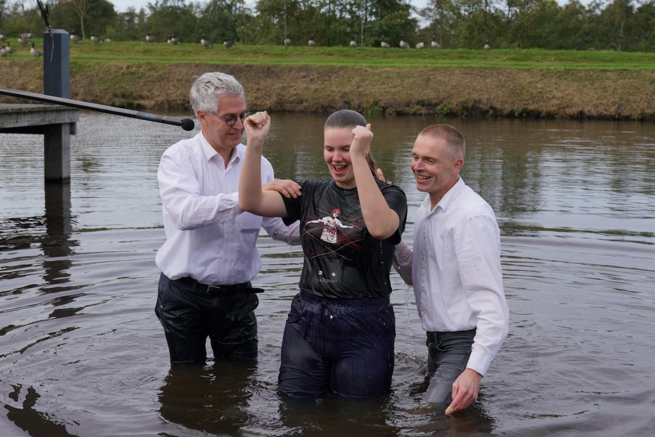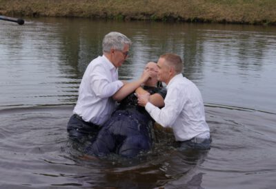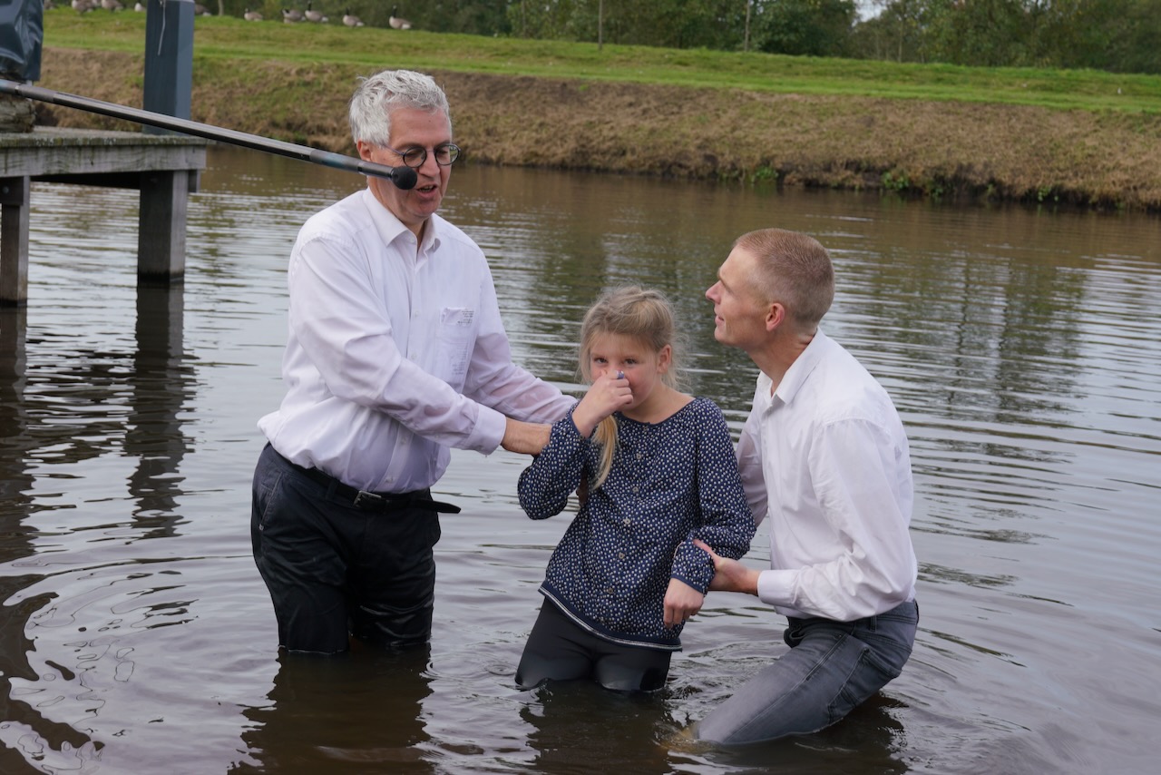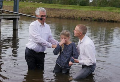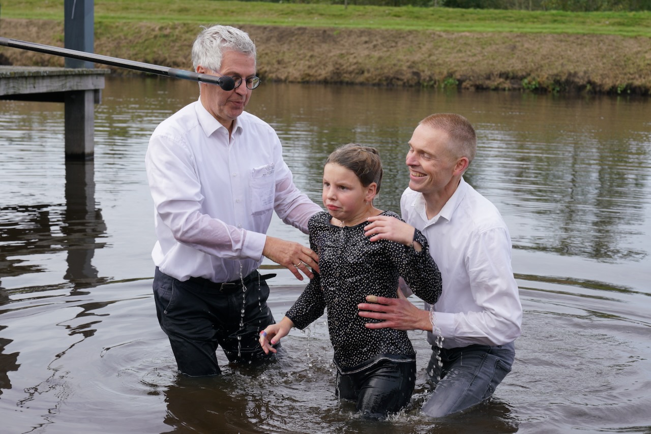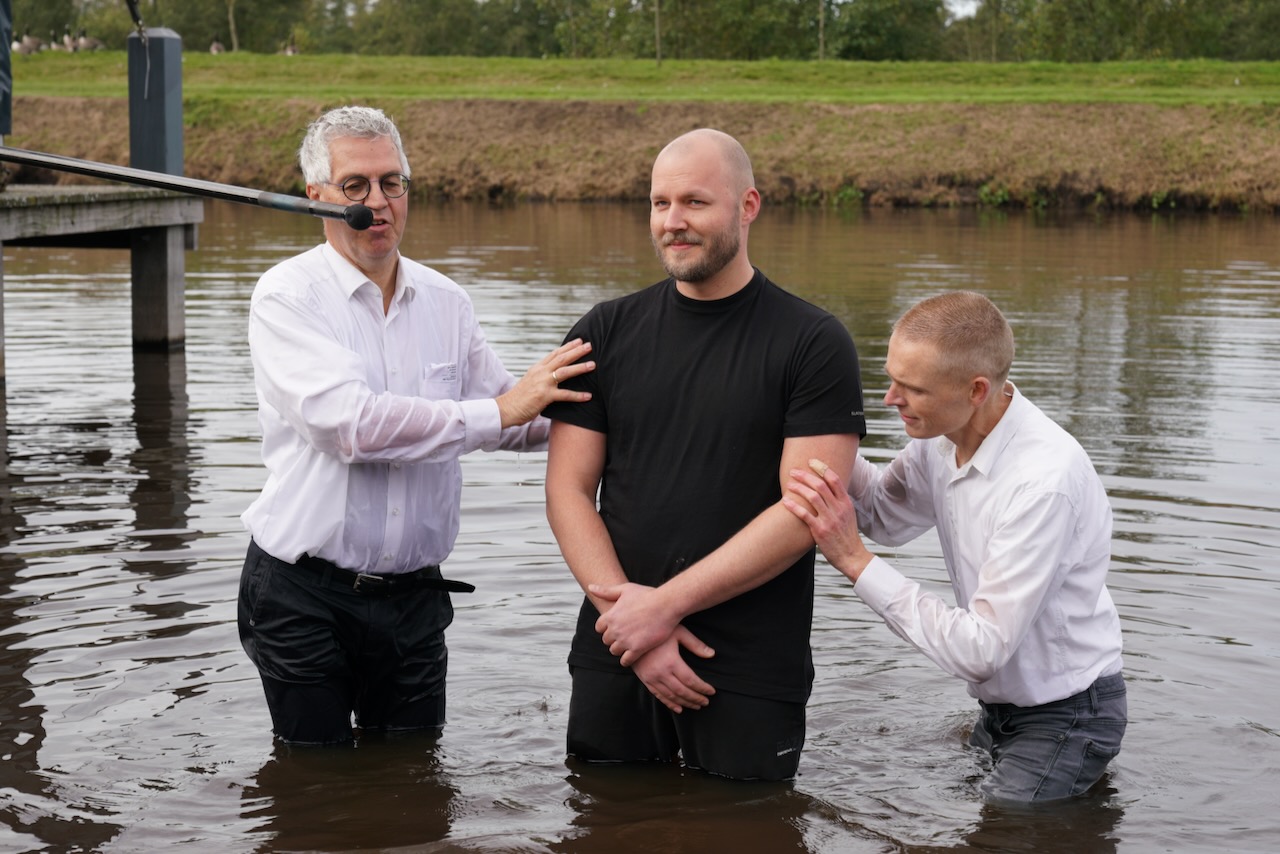 Zondag 19 oktober werd voor onze gemeente in meer dan één opzicht een bijzondere dag. In de ochtenddienst werden twee kinderen opgedragen en vertelden zes gemeenteleden wat God in hun leven heeft gedaan en wat het geloof voor hen betekent. Later werden ze aan de Westerdwarsreed tussen Opende en Surhuisterveen door middel van onderdompeling gedoopt of werd hun doop bevestigd.