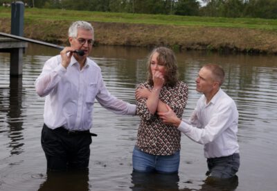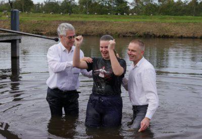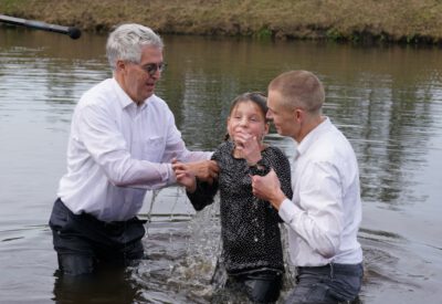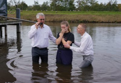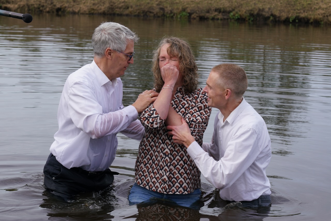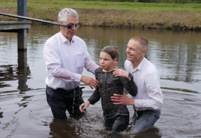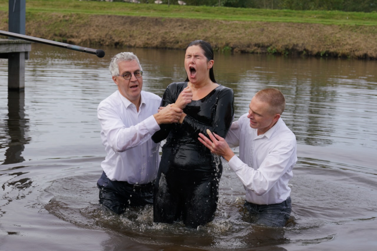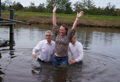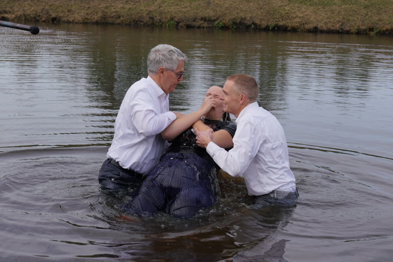 Zondag 19 oktober werd voor onze gemeente in meer dan één opzicht een bijzondere dag. In de ochtenddienst werden twee kinderen opgedragen en vertelden zes gemeenteleden wat God in hun leven heeft gedaan en wat het geloof voor hen betekent. Later werden ze aan de Westerdwarsreed tussen Opende en Surhuisterveen door middel van onderdompeling gedoopt of werd hun doop bevestigd.