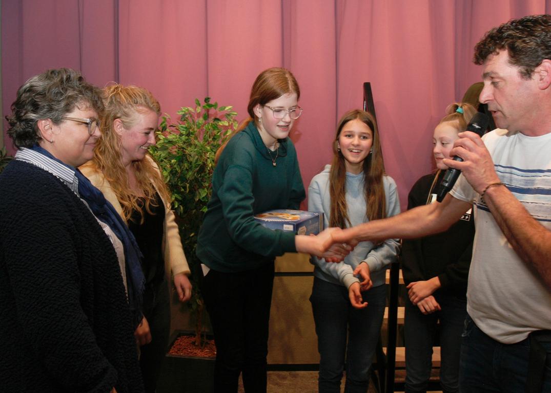 “Noch tsien sekonden!”, roept Derick Hiemstra dan door de zaal waarna de uitslag bekend wordt gemaakt. “Girls only, jullie mogen taart komen eten!”, zo roept de leiding even later door de zaal wanneer zij de welverdiende slagroomtaart mogen oppeuzelen. “Joe hoe-oe”, gillen ze enthousiast. Volgens jaar willen ze zeker weer meedoen aan Soep & Sjoelen.