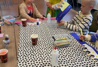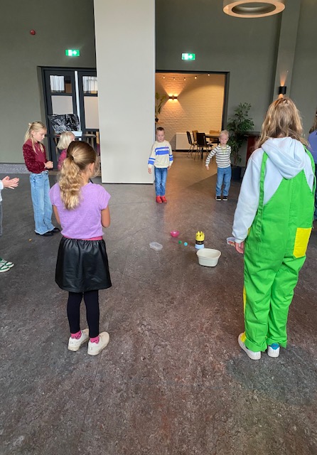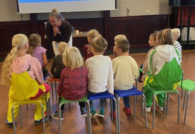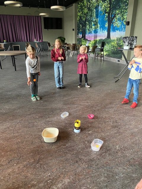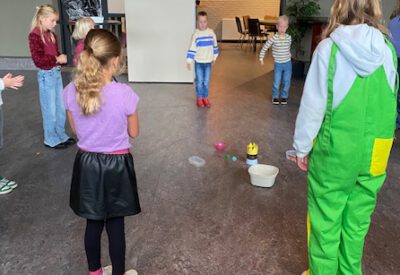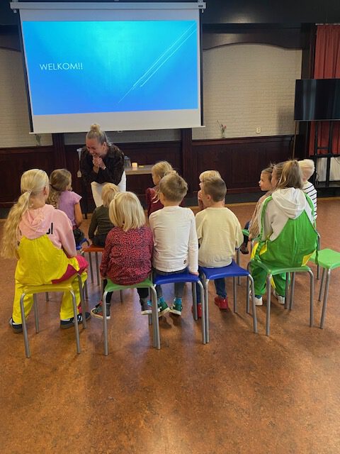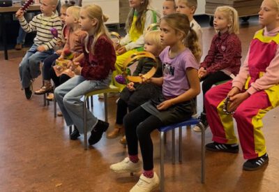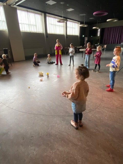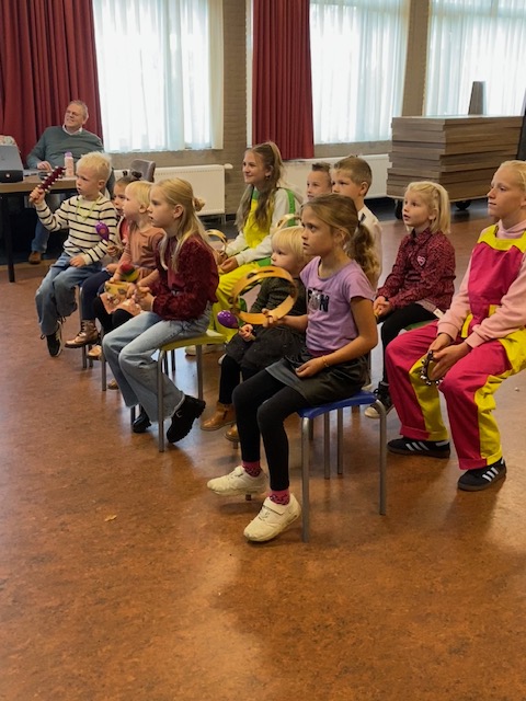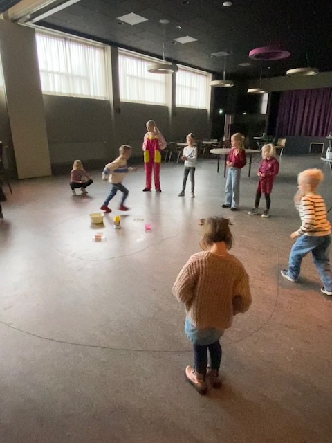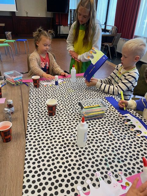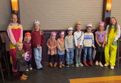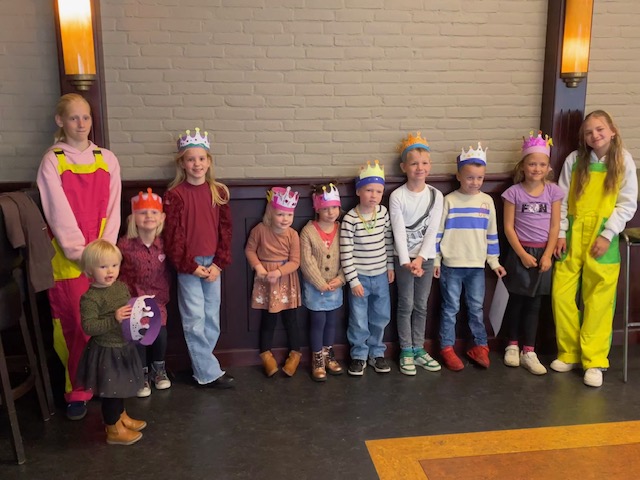 Bij de onderbouw gingen we zingen, muziek maken en een Kroon knutselen. Pinky en Binky speelden een leuk spel met ons.