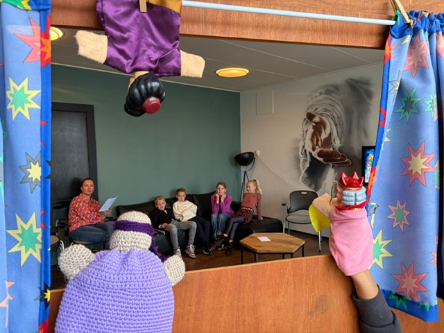 Bij de bovenbouw werd het verhaal uitgespeeld met de poppenkast, en was er een escaperoom in het thema koningin Ester. Het waren 2 gezellige diensten.
