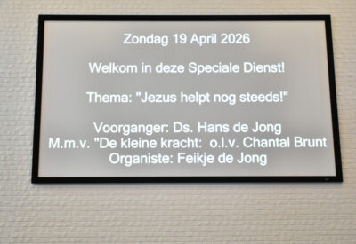 De dienst wordt geleid door ds. Hans de Jong en het thema is: Jezus helpt nog steeds! Alles wat aan de orde komt is in begrijpelijke taal.