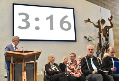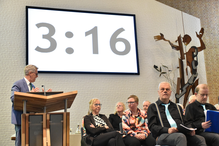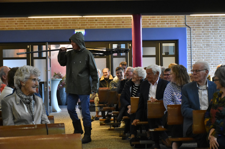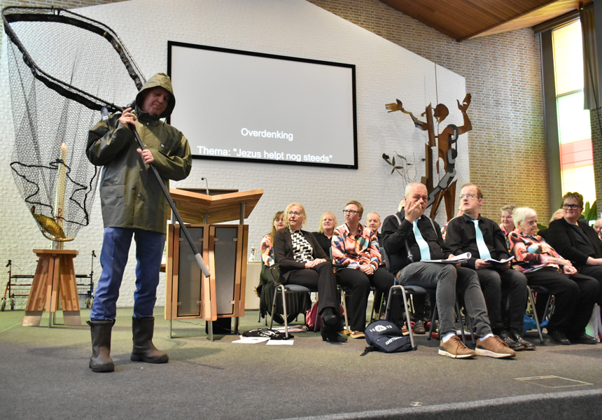 De uitleg van het verhaal van de vissers op het meer, beschreven in Joh. 21:1-14, doet de dominee als verklede Urker visser met een heel groot schepnet! De Urker vissers hebben het momenteel heel zwaar met de hoge brandstofprijzen, maar Jezus helpt ook nu in deze tijd als we met teleurstellingen te maken krijgen, net zoals Hij de discipelen hielp. Het net van de vissers op het meer kunnen we vergelijken met de kerk, het net scheurde toen niet, ondanks de grote hoeveelheid vissen en zo zorgt Jezus ook dat de kerk, de gemeente, bij elkaar gehouden wordt!