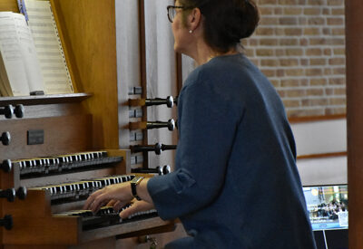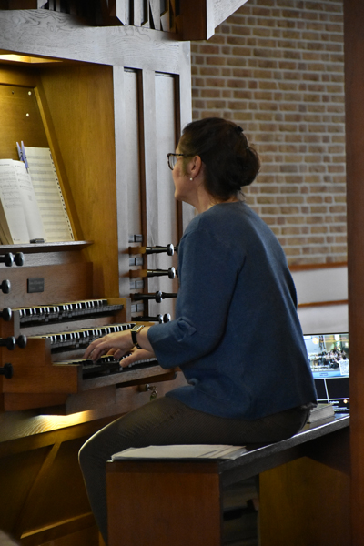 Verder zingen we bekende liederen samen met het koor en Chantal dirigeert enthousiast. Zingend en weer zwaaiend wordt de dienst afgesloten met “Tot ziens God, tot ziens mensen.”