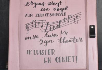 Hans de Jong noemde een paar weken terug het woordje ‘samen’. “Ik wil nog een woord toevoegen.” Hij pakte weer zijn penseel en schilderde het alsnog op het linnen: een ‘hart’. “Het symbool van de liefde. En liefde…dan komen we vanzelf bij ‘samen’.”