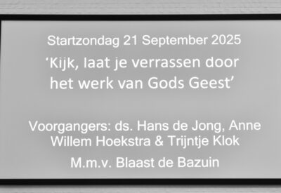 Van het thema behandelden elk van de drie voorgangers een deel. Hans de Jong het woordje Kijk! . “Het wil ons uitnodigen om scherp te kijken wat er gebeurt. Gewoon in ons leven, maar vooral van Godswege. Dan kan het zijn dat we naar hetzelfde kijken, maar dat we het toch anders opvatten. We hebben niet allemaal dezelfde relatie met de Here God. Je kunt er op meerdere manieren naar kijken. Hoe kijk je ernaar. Wat zou het mooi zijn dat wij ook in het komende seizoen mogen opmerken dat de Geest van God soms op wonderbaarlijke manier bezig is. En dat wij dat allemaal verschillend kunnen ervaren, maar dat we dat wel met elkaar mogen delen.”