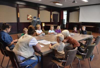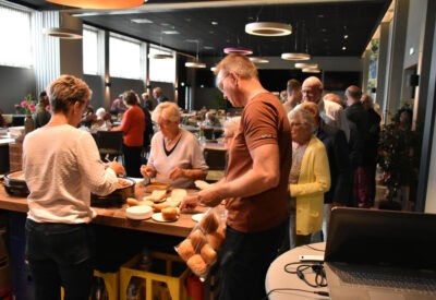 Na de dienst was het weer gezellig druk in de zalen van De Lantearne. Er waren diverse activiteiten voor jong en oud. Het spel ‘Konijnenkeutels’ was opnieuw erg populair. Ook konden kaarten gemaakt worden. ‘Herken het gebouw’ leverde nogal wat hoofdbrekens op: 23 gebouwen uit Surhuisterveen en Boelenslaan (van bovenaf geknipt) moesten worden geraden. ‘Kletspotjes’ brachten mensen in gesprek over het jaarthema.