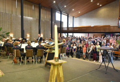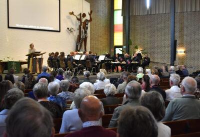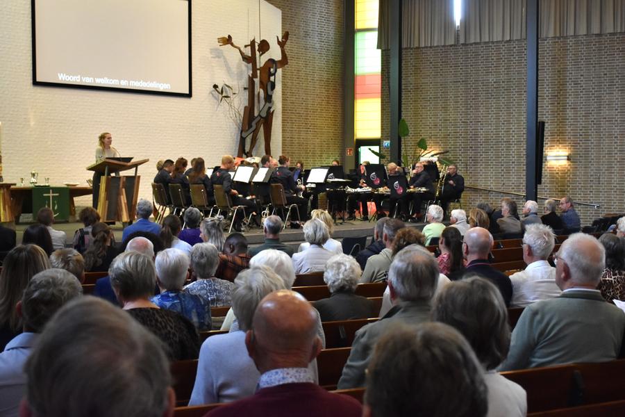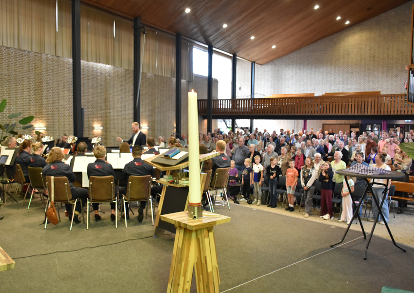 De feestelijke kerkdienst op zondagmorgen werd geleid door Hans de Jong, Anne-Willem Hoekstra en Trijntje Klok. De muzikale medewerking was van Brassband Blaast de Bazuin o.l.v. Chris van der Veen. Lector was Line Atsma, die de vele bezoekers van harte welkom heette. De Bijbellezing was uit Handelingen 8: 26-40, Filippus en de Ethiopiër. De liederen waren afgestemd op het thema van deze dag.