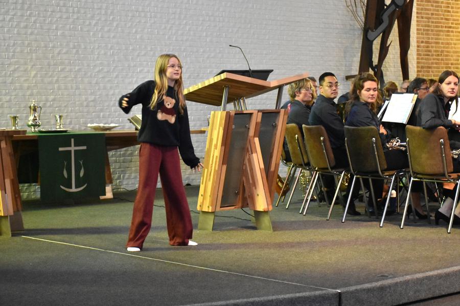 Na het kindermoment deed Febe nog een dans op muziek van het lied ‘Heilige Geest, zo dichtbij, altijd helpt U mij, nooit verlaat U mij.’, waarmee een eind kwam aan een fijne en warme eredienst.